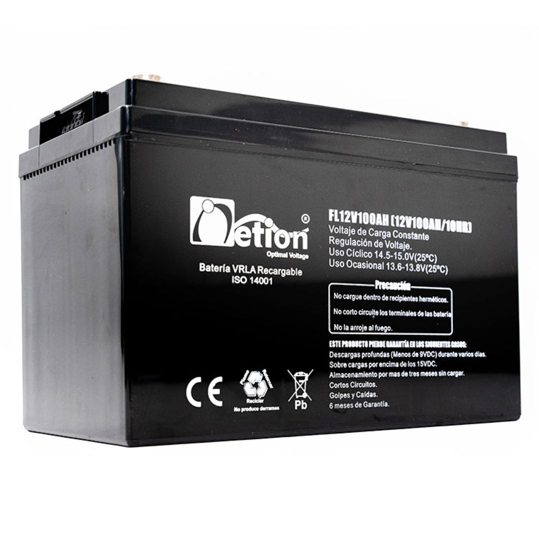 Especificaciones: 12V / 100AH / 338mm-173mm-215mm / 30.5Kg