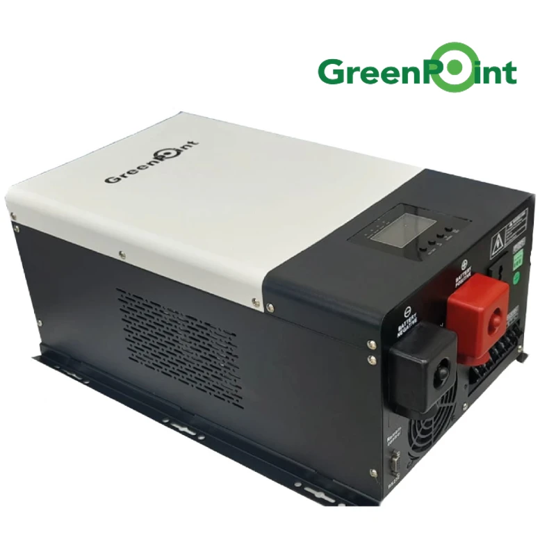 El Inversor Híbrido Green Point de 1500W 24 V combina las funciones de un inversor de onda sinusoidal pura, un cargador de batería y un controlador de carga solar en una sola unidad, lo que lo convierte en una solución todo en uno para sistemas de energía fuera de la red.
