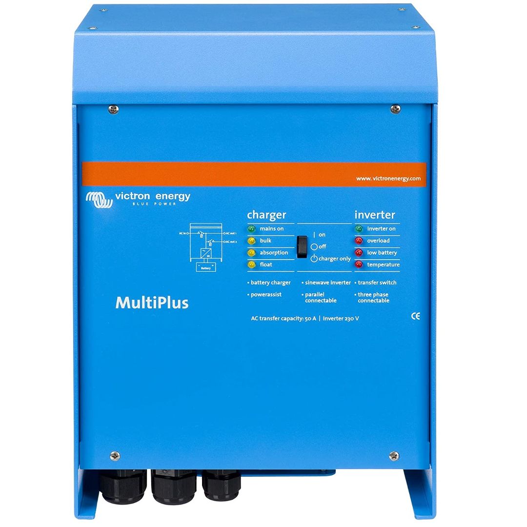 El MultiPlus, como su nombre indica, es un inversor y cargador combinados en un paquete elegante. Sus muchas características incluyen un verdadero inversor de onda sinusoidal, carga adaptativa, tecnología híbrida PowerAssist, además de múltiples funciones de integración de sistemas.